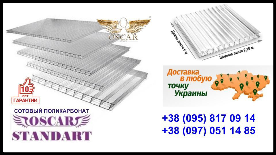 / Стільниковий полікарбонат OSCAR Стандарт (прозорий/одинкамерний), мм 8